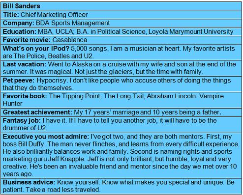 Besides being the CMO for BDA, Bill writes an influential sports business focused blog An Athlete Marketing Guy to encourage thought and discussion of current events and how they impact the world of sports marketing.